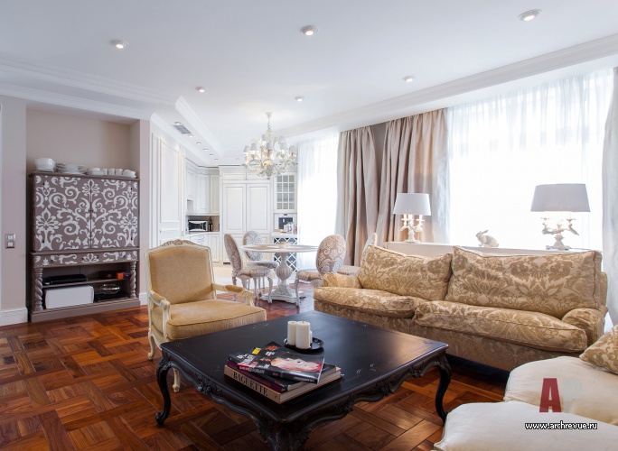 Большая квартира (площадь 200 кв. м) для семьи с двумя детьми расположена в современном жилом комплексе «Долина Грез». Работая над проектом, дизайнерская команда стремилась создать светлый и уютный интерьер оптимальный для жизни в мегаполисе. За основу была взята современная классическая стилистика и светлая цветовая гамма.