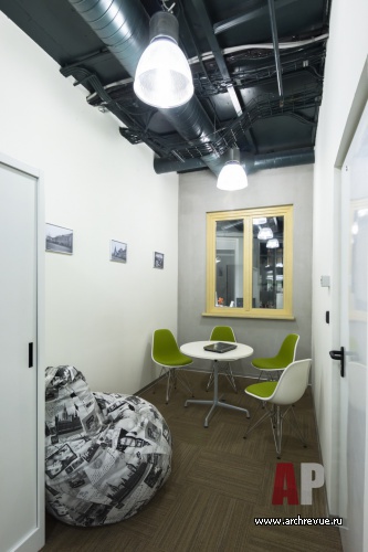 Чтобы подчеркнуть демократичную сущность компании, офис был решен по принципу open-space. В нем отсутствуют изолированные кабинеты. Зонирование задано конструктивными особенностями здания и необходимостью сгруппировать и выделить рабочие зоны, где могли бы уместиться до 20 человек одновременно. При проектировании учитывались особенности работы сотрудников, которые имеют свободный график и могут приходить в офис несколько дней в неделю.