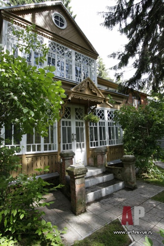 Заказчица давно мечтала о старой даче, которая хранит память о жизни русской интеллигенции XX века, где можно пить чай, разговаривать до утра на веранде, читать книги в тишине. Увидев двухэтажный деревянный дом с мезонином, остекленными верандами, резным крыльцом и филигранно-узорчатыми наличниками, она поняла, что это как раз, то нужно. Расположенный в стародачном поселке на участке с вековыми соснами и фруктовыми деревьями дом некогда принадлежал семье императорского фотографа.