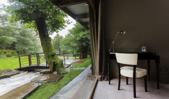 Второй этаж занимает спальня с камином. На верандах, наполненных светом и воздухом, устроены зоны отдыха и места для чаепития с диванами, креслами и чайными столиками.