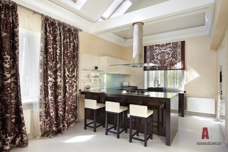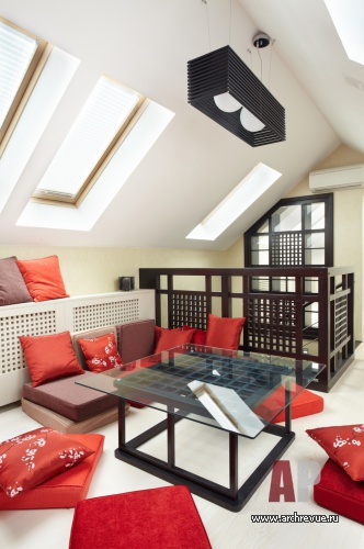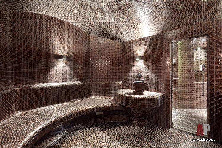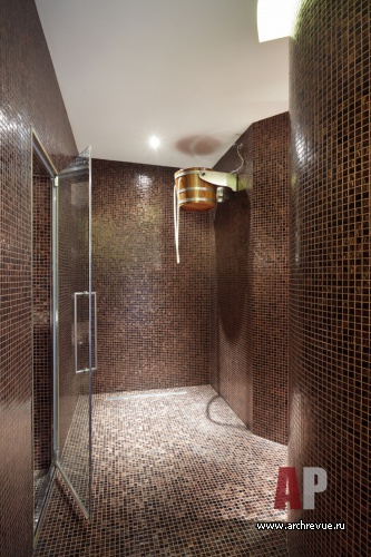 Второй этаж занимают спальни: родительская с большой гардеробной, две детские и ванная комната. На верхнем, мансардном этаже организована зона отдыха в японском стиле, а в цоколе спроектирован SPA-комплекс с турецкой баней.