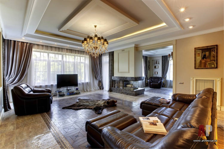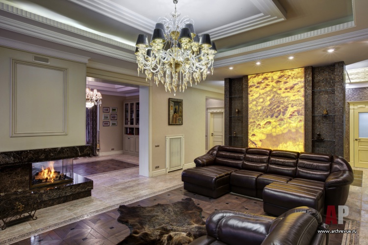 Именно поэтому важную роль в интерьере играют натуральные материалы, цвета и текстуры. Благодаря использованию гранита, сланца, оникса, разных пород дерева, декоративных штукатурок, кожи, меха интерьер выглядит подлинным, настоящим.