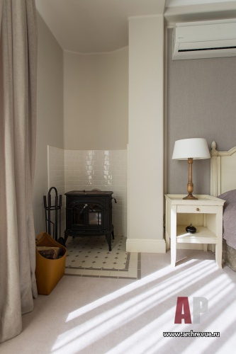 Опорные столбы винтовой центральной лестницы выполнены из дерева с влажной фактурой, ажурные балясины – из черного чугуна. Перед каждым номером – табличка и звонок, а в каждой гостиной – камин или уютная французская печь. Все в этом интерьере продумано до мелочей, а красота – в деталях. В старинных гравюрах по стенам, в тканой фактуре фламандских дымчатых обоев, в английской сантехнике и добротной американской мебели, в фарфоровой посуде и вязаных пледах, аккуратно разложенных на кроватях.