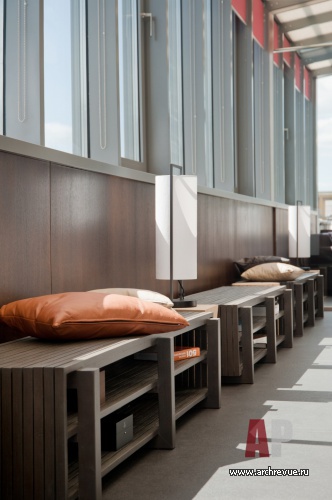 Для этого была возведена стеклянная конструкция с металлическими профилями, где разместились общественные зоны, их обогрев обеспечили внутрипольные конвекторы, защиту от солнца – рольф-шторы.