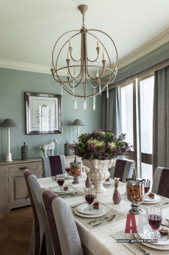 Эклектичный интерьер выполнен вне времени. В нем присутствую черты современного актуального дизайна, элементы французской и американской классики. Образ квартиры формирует удивительная цветовая гамма, варьирующаяся от жемчужно-молочных до глубоких лиловых оттенков, а также материалы с тактильной фактурой: текстильные и замшевые обои, кашемир, шелк, бархат.