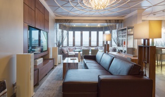 В дизайн-проекте воплощены две идеи: связь интерьера и экстерьера и объединение современной архитектуры и неоклассического наполнения, создающего уютную атмосферу. Панорамные окна не только впускают свет, но и открывают вид на вековые сосны и безмятежную гладь озера.