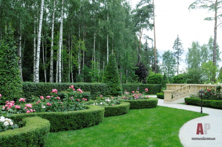 Предстояло сделать красивый сад, сохраняющий свое очарование и зимой. К дому в стиле Наполеона III так и просился классический французский стиль, но хозяйка была поглощена идеей о липовой аллее, идущей от террасы дома до оранжереи, поэтому классической французской планировке пришлось частично уступить, и в саду появились исконно русские черты. Кроме того, здесь присутствует и уголок японского сада, что делает сад еще более эклектичным.