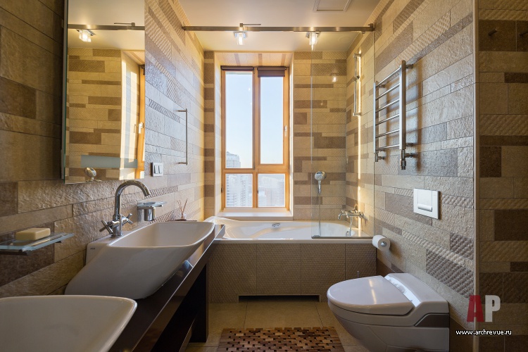 Интерьер квартиры организован по принципу архитектурного перетекания: в каждом помещении находит выражение тема минималистичного лофта с бетонными стенами и декоративными акцентами из меди и патинированных материалов. Важную роль играют урбанистические детали и предметы искусства работы художников Елены Кудиновой, Анны Гусевой и Алексея Кузнецова.