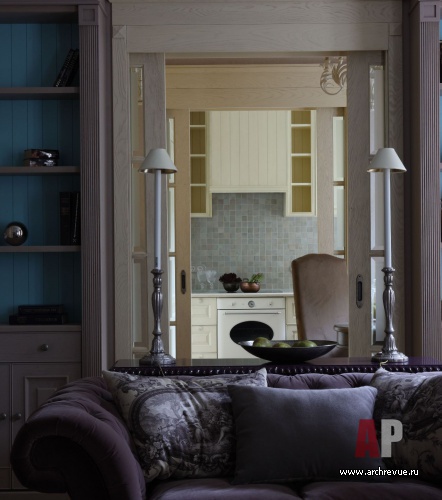 Чтобы она выглядела просторной, автор проекта расположила гостиную, столовую и кухню на одной оси. Когда двери открыты, три помещения просматриваются насквозь, как парадная анфилада.