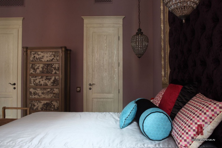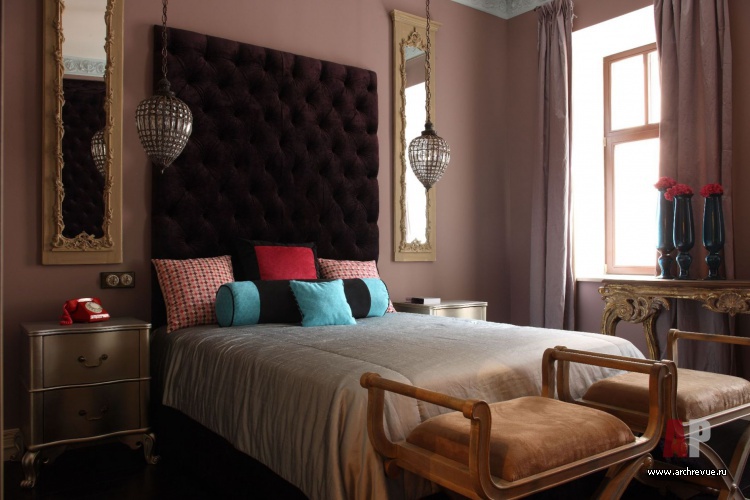 Спальни кровати, изготовление «Лаборатория Окна »; комод и шкафы, изготовление «Ассоциация русских мастеров»; прикроватные тумбы Julian Chichester; торшеры, изготовление «Артим».