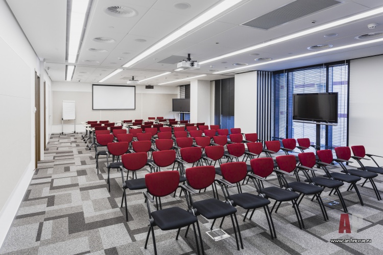 С новинками компании также можно ознакомиться на сенсорных экранах и открытых витринах. Большой холл от ресепшен ведет в учебную часть центра, где предусмотрены помещения для любых учебных форматов – семинаров, лекций, конференций и тренингов. Комнаты рассчитаны как на нескольких человек, так и трансформируются в залы на десятки участников.