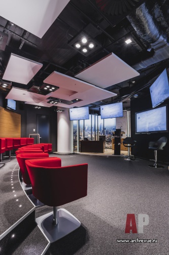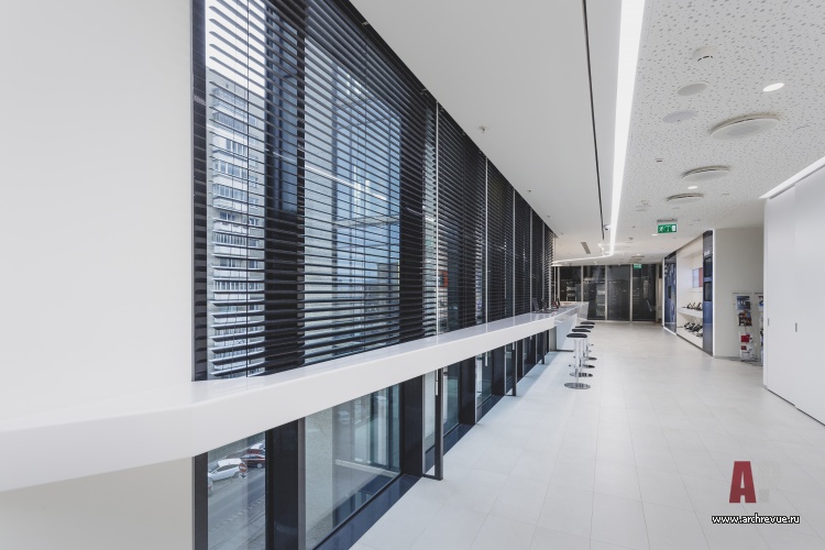 Дизайн интерьера офисного центра подчинен задаче демонстрации, продвижению и обучению пользования новыми продуктами компании-лидера в программном обеспечении. Серьезное внимание уделено созданию экспозиционной среды (экраны, цифровые панели), которая позволяет не только ознакомиться с новым софтом, но и опробовать его практически.