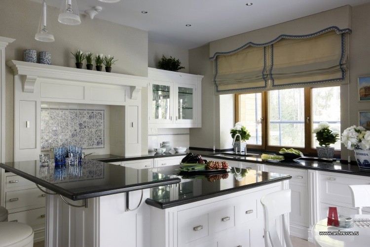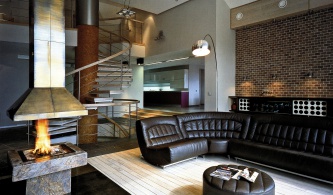 Поднявшись по парадной лестнице, попадаешь в парадные гостевые помещения: гостиную с камином, столовую, кухню. Одним пролетом выше расположен домашний кинозал, рассчитанный на 8 человек, а также апартаменты старшего сына (они исполнены как отдельная квартира) и гостевые спальни. Еще выше – родительская спальня с двумя гардеробными и ванной, а также кабинет и приватный блок младшей дочери. На самом верхнем уроне под стеклянной крышей организован зимний сад.