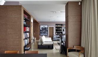 Дом разделен на две изолированные части: в светлом объеме со стеклянным эркером находится гостевая зона. В едином помещении со вторым светом организована гостиная, кухня и зимний сад для семейного отдыха и приемов. На надстроенной антресоли находится зона отдыха с профессиональной мебелью для релакса. Назначение второго блока помещений – отдых и поддержание здоровья: частный SPA-комплекс включает в себя сауну, хаммам и душевую.
