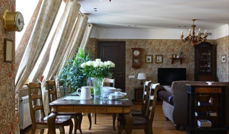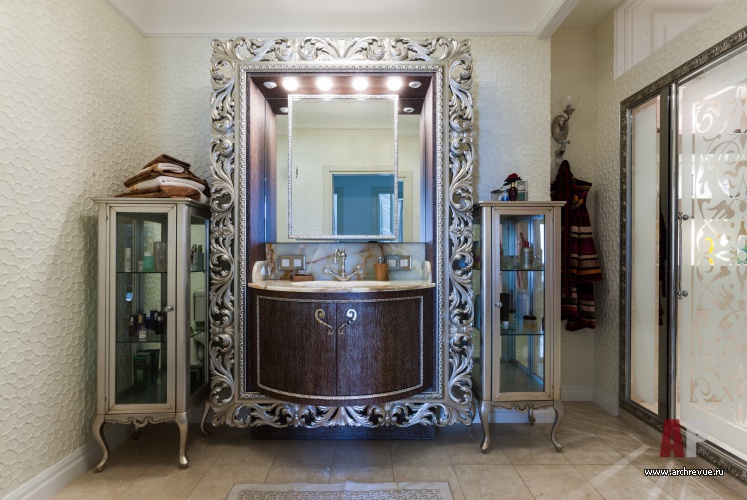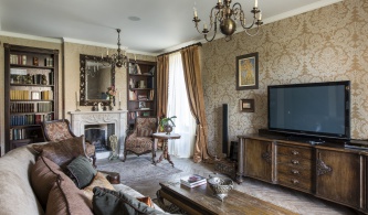 В выборе декоративных решений дизайнер сделала ставку на дорогие материалы и фактуры природного камня и полированного дерева, характерные для стилистики 20-х годов XX века. Интерьер квартиры решен на контрасте строгого монохромного холла с выполненными в теплой песочной колористке общественными помещениями, где так приятно отдыхать после рабочего дня.