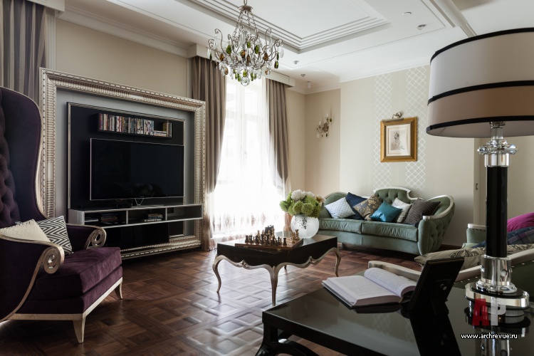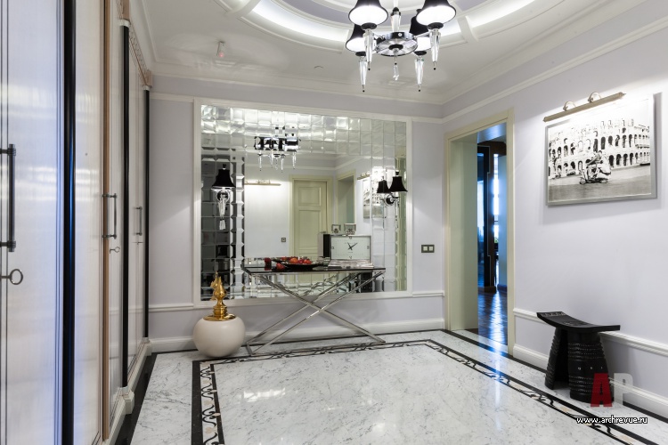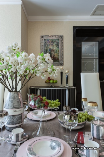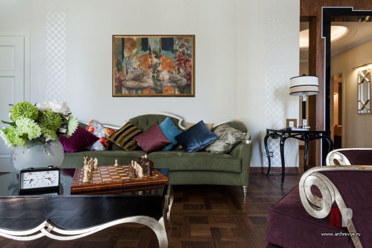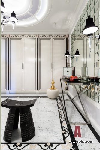 Заказчики, американцы, живущие в Москве, свою новую квартиру видели современной и респектабельной. Собственно стилистическую задачу они сформулировали так: требовалось создать спокойный, уютный, расслабляющий городской интерьер со своим особым характером, со скрытой пружиной, которая определяет его лицо. Этой пружиной стали переосмысленные на современный лад цитаты из культурного наследия эпохи ар-деко. Блестящей и вдохновляющей.