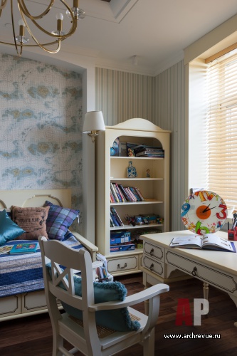 Большая семейная квартира имеет трехчастное деление: общая зона, апартаменты родителей, детская половина. Справа от входного блока с коридором находится блок детских помещений (спальни, комната няни, гардеробная, санузел). Слева – гостевые помещения: гостиную, объединенную широким дверным приемом с кухней-столовой. Из гостиной также можно попасть и на территорию родителей.