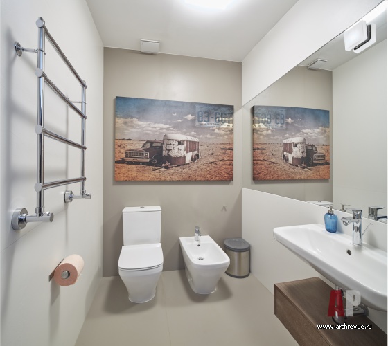 Встроенные и платяные шкафы с лаконичными фасадами, с одной стороны, выполняют функцию технических помещений и систем хранения, а с другой – продолжают декоративную тему. Они выполнены из МДФ-панелей со шпоном дуба и имеют интересную фактуру состаренного дерева. Деревянные изделия со сложным финишем в духе винтаж выполнены на заказ российским производителем.