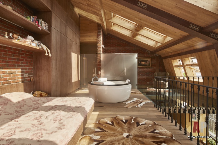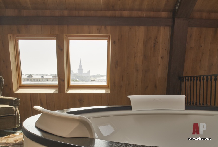 Изначально небольшую антресоль архитектор увеличил с помощью стеклянной плиты. Теперь хозяйка может любоваться высоткой МГУ из окон своей мансарды.