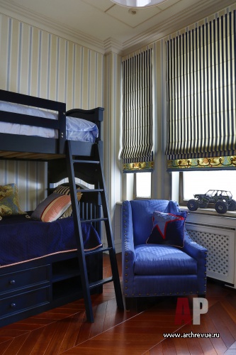 Несмотря на то, что все помещения изолированы, благодаря анфиладному построению они тематически связаны друг с другом. Три спальни (родительская и две детские) со своими ванными и гардеробными составляют приватную часть.