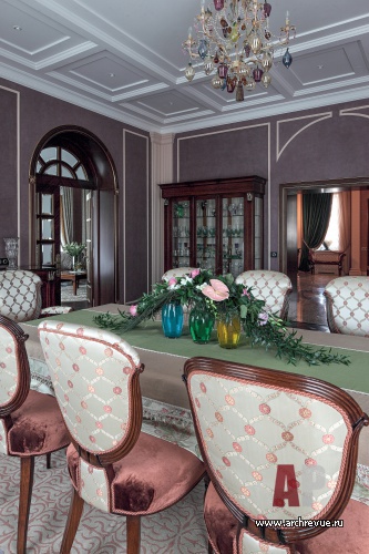 В облике дома тесно переплетаются черты традиционной русской усадьбы, итальянского палаццо и современного французского особняка. Оформление общественных помещений – дань русским ремесленным традициям с сюжетом на былинную тему, которые объединены с приметами исторического европейского дизайна.