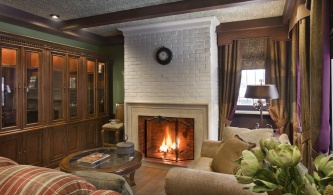 Полы выложены большими плитами керамогранита, имитирующего мрамор. Фреска с изображением прогретого солнцем побережья создает атмосферу итальянского курорта.