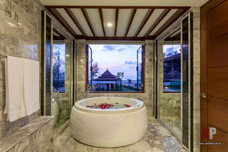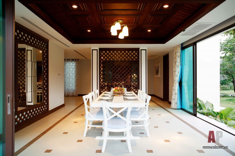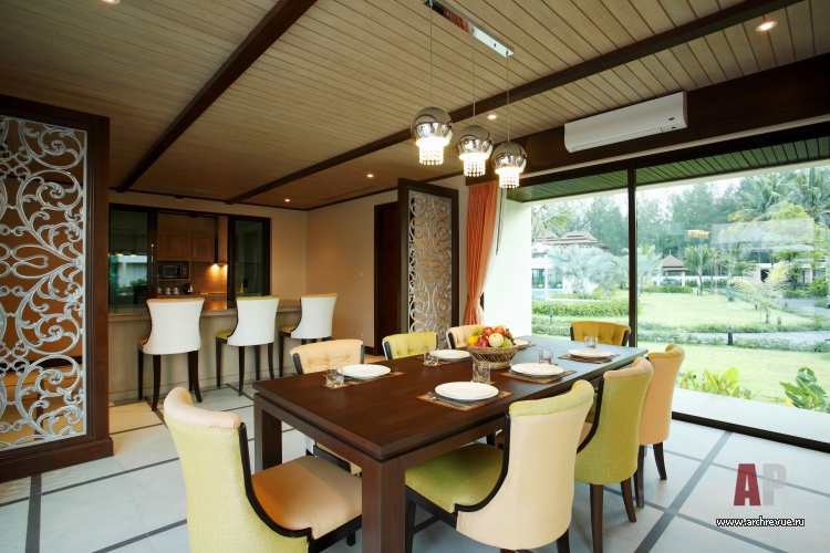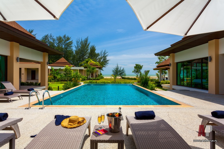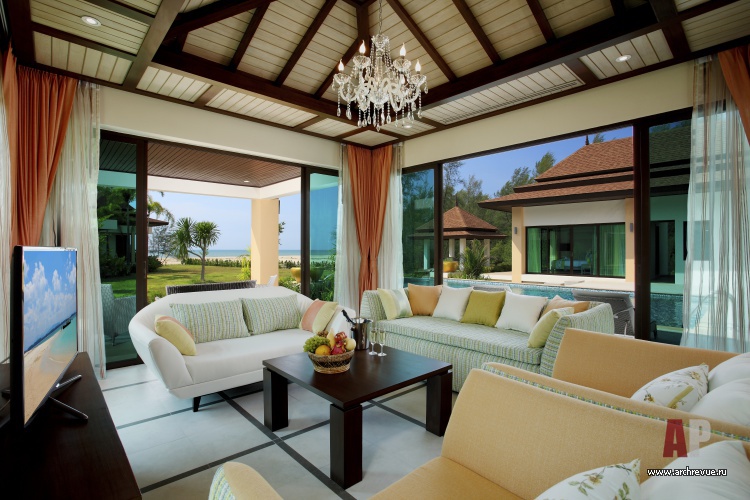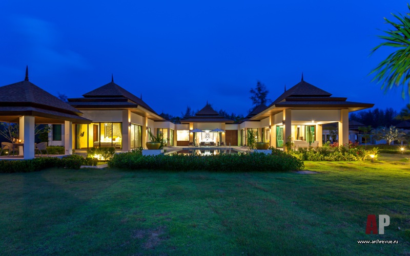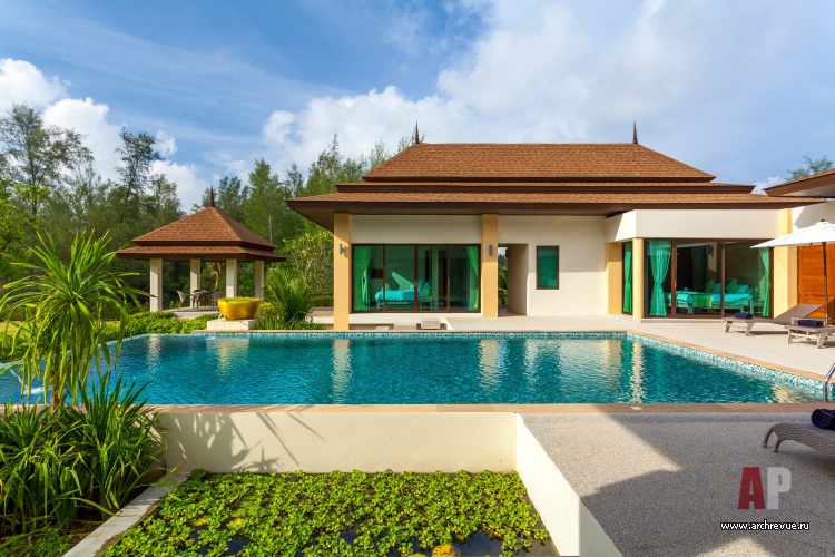 Вилла в Таиланде задумывалась как место для семейного отдыха с видом на теплое море. Одним из требований к оформлению жилища стал уход от чрезмерной экзотичности, присущей азиатским виллам, и создание европейского интерьера с легкой атмосферой. Облик виллы – современная интерпретация традиционной тайской архитектуры с характерными очертаниями крыш и бассейном вдоль внутреннего фасада. Благодаря этим особенностям дом гармонично сосуществует с экзотическим ландшафтом.
