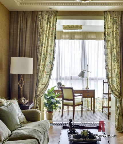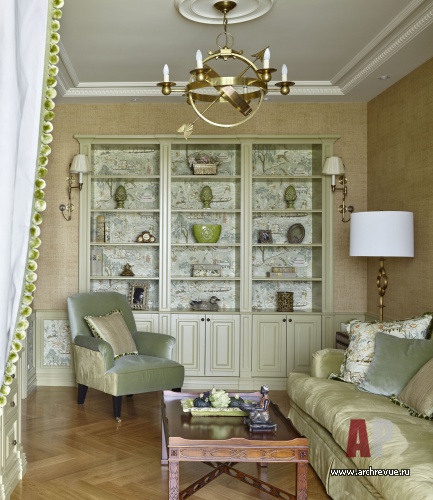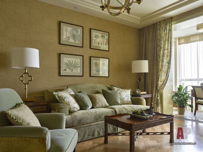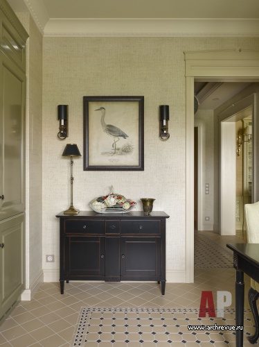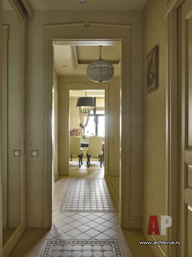 Интерьер семейной квартиры выполнен в эклектичной стилистике с элементами неоклассики. Современные предметы и технические светильники в нем объединены с традиционными отделками (обои, лепной декор из гипса, керамическая плитка) и неоклассической мебелью. Теплая цветовая гамма строится на нюансах: пастельные фисташковые, бежевые, терракотовые и коралловые оттенки создают образ интеллигентного интерьера с историей.