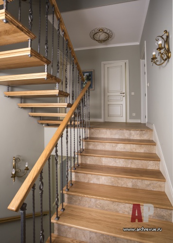 Для семьи с тремя детьми дизайнеры Анна Яровикова и Юлия Мясникова декорировали четырехэтажный таунхаус в Подмосковье. В интерьере реализована концепция загородной жизни на природе, приметы современного стиля здесь соединены с элементами кантри. Из-за архитектурных особенностей постройки корректировать размеры и форму помещений пришлось исключительно декораторскими методами. Одним из условий стало использование в обстановке уже существовавших отделочных материалов: половой доски, а также сантехники и плитки для оформления санузлов.