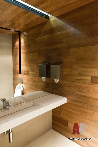 В оформлении ресторана в стиле минимализм использована древесина ореха, стекло, металл, однотонные декоративные стеновые отделки. Плоскости потолков организованы с помощью векторной разметки от системы вентиляции и встроенных светильников. Вертикальная доминанта бара оформлена разноцветной подсветкой.