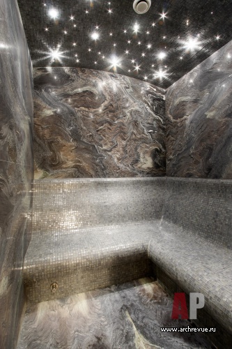 К общественному блоку примыкает бассейн с домашним SPA-комплексом. Верхние этажи занимают приватные помещения, в цоколе расположены технические службы.