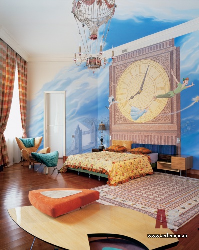 Несмотря на то, что интерьер решен в классической эстетике, он не ограничен рамками единого стиля. Неповторимость каждому помещению придала оригинальная цветовая гамма с использованием ярких, насыщенных цветов: бордового, салатового, синего, фиолетового. Образ рукотворного интерьера создает сложная лепнина, резьба по дереву, ручная роспись с растительным и анималистическим орнаментом. О его высоком статусе заявляют роскошные материалы: редчайший оникс, художественный паркет и столярные изделия из экзотических пород дерева, в числе которых лимонное дерево, палисандр, олива, карельская береза.