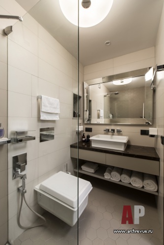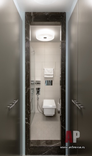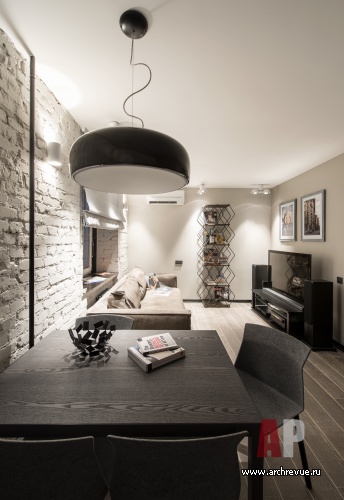 При организации пространства авторы проекта руководствовались простым принципом – «выжать» из небольшой столичной квартиры максимум полезной площади. Поэтому сначала предложили заказчику решить ее как классическую студию. Но варианту полной свободной планировки он предпочел частичную студию с полноценной прихожей, изолированной спальней и общей кухней-гостиной.