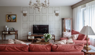 К работе над проектом трехэтажного танухауса в живописном районе Подмосковья декораторы Елена Чаброва и Ольга Чебышева подключились, когда все черновые работы были закончены, планировка обозначена, материалы и мебель закуплены, а в некоторых помещениях уже полным ходом шла отделка. Однако заказчики первоначально в качестве основной стилистики выбравшие пышное барокко, решили отказаться от идеи исторического жилья, облегчить и осовременить интерьер, они были готовы частично поменять мебель и отделки.