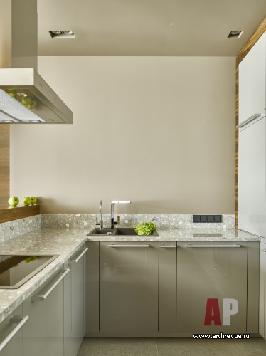 Сами заказчики квартиру рассматривают как лофт, пространство для отдыха, этим задачам подчинено ее зонирование. Центральное помещение – общая зона гостиной, кухни и столовой. Рабочая зона кухни вынесена в темную нишу, сервировочная часть отделена барной стойкой, столовая группа находится в непосредственной близости от мягкой зоны и домашнего кинотеатра.