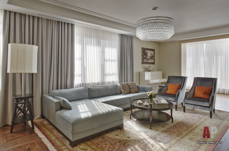 Полная интеллигентной роскоши квартира спроектирована для заказчика, который обратился к архитектору Олегу Клодту с пожеланием создать спокойный и уточенный эклектичный интерьер в узнаваемом стиле бюро. Творческую свободу и бюджет не ограничивал, задач озвучил всего несколько: чтобы интерьер выглядел красиво и был удобным для жизни большой семьи с маленькими детьми.