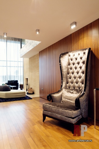 Авторы проекта стремились создать пространство для отдыха и расслабления, именно поэтому в оформлении ставка сделана на природные материалы: дерево, мрамор, шелковые и шерстяные ткани, мех. Зная любовь хозяйки к красивым вещам, немного роскоши дизайнеры добавили в деталях и аксессуарах интерьера.
