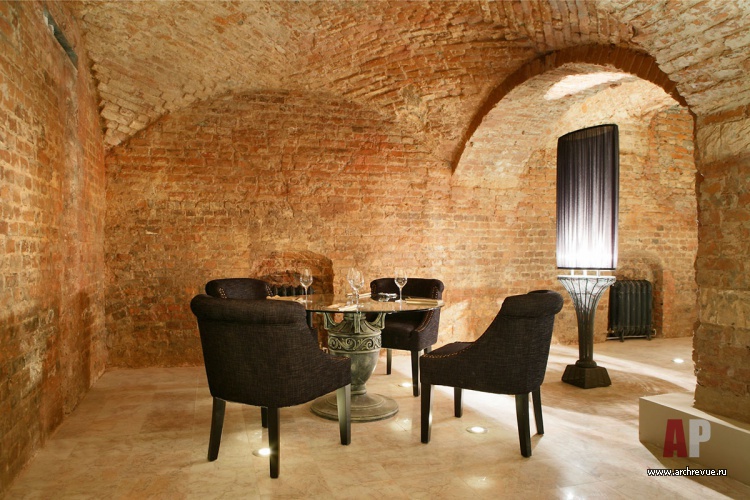 Поскольку это памятник архитектуры, то что-то кардинально переделывать было нельзя. Если залы первого этажа и подверглись некоторым изменениям, то архитектура нижних помещений была сохранена полностью. Их облик формируют сводчатые кирпичные потолки.