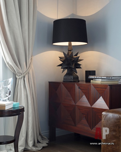 Гостиная кожаный диван и кресла Ralph Lauren, столик Vladimir Kagan, комод De Coene