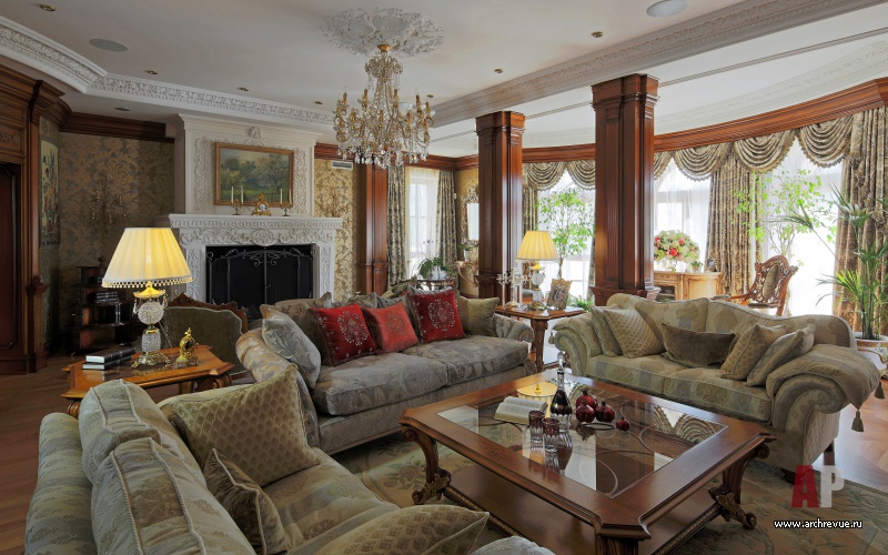 Дизайнер Ольга Кушнарева-Леоне оформила особняк в стиле пышной английской классики. На создание парадного дворцового интерьера ее вдохновили хозяева – ярые приверженцы классики, а также сама архитектура дома, который внешне напоминает готический замок.