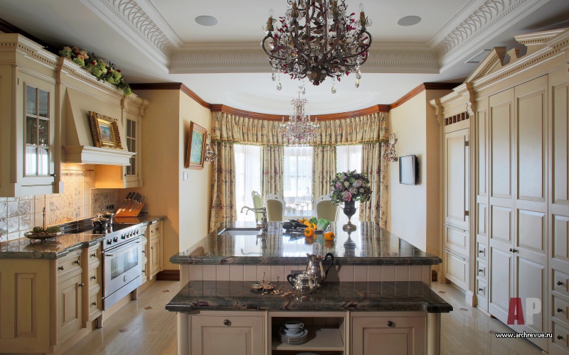 Важный этап работы был посвящен подбору деталей и аксессуаров: текстилю из лучших шелков и хлопка с бахромой, тесьмой, кистями ручной работы; посуды для кухни и столовой; ваз, статуэток, шкатулок, часов – всем тем многочисленным декоративным подробностям, которые создают парадный настрой.