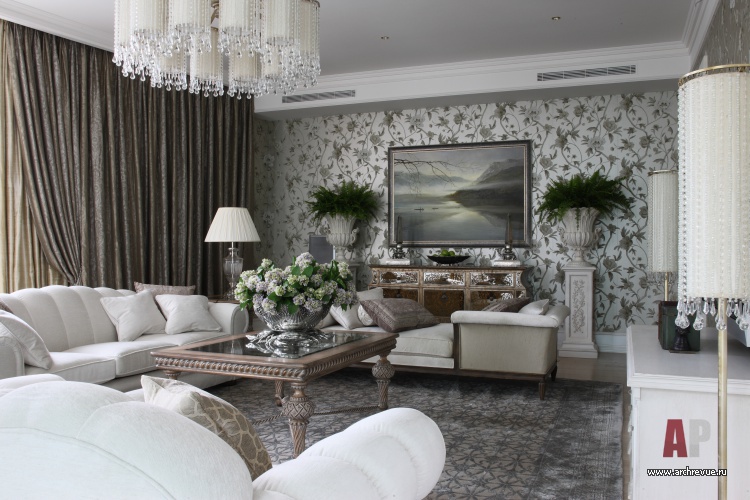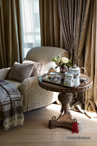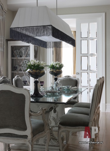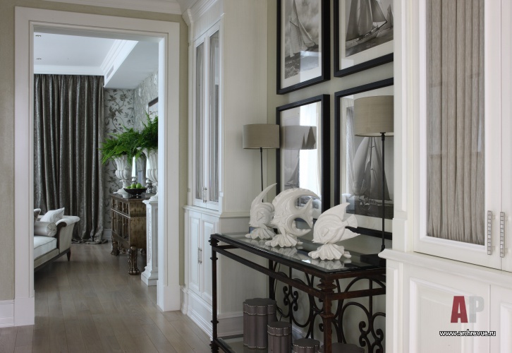 Дизайнер Ольга Кушнарева-Леоне, руководитель бюро Charles.Cameron, оформила романтичный интерьер в серебристо-жемчужных тонах. Его хозяева – приверженцы консервативной классики, которая для московской квартиры часто тяжеловата. Чтобы традиционный интерьер выглядел органично, дизайнер предложила облегчить и упростить его, смешать с приметами современности, разбавить чрезмерную пышность лаконичными формами и добавить перламутрового флера.
