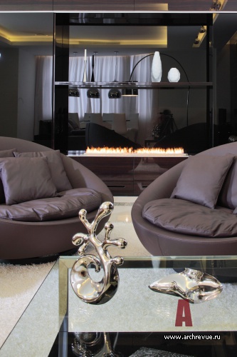 Для молодой семьи архитекторы студии Geometrix Design спроектировали современную квартиру, в которой функциональность сочетается с домашним уютом, а строгие архитектурные формы с теплой фактурой природных материалов и камином с живым огнем. Полированный макасар, оникс, кожа создают комфортную среду для семейного отдыха.