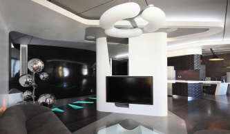 К поставленной задаче архитекторы подошли со всей деликатностью: максимально сохранили сложившуюся интерьерную композицию, теплую песочную гамму, заданную отделкой стен плитами травертина, и добавили жизни с помощью декоративных приемов, оригинальных предметов и ярких цветовых акцентов.