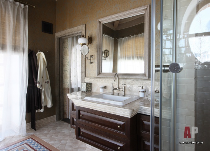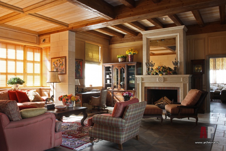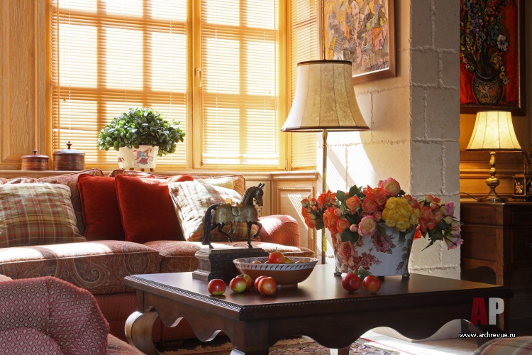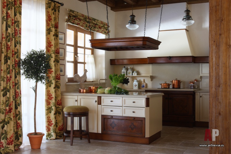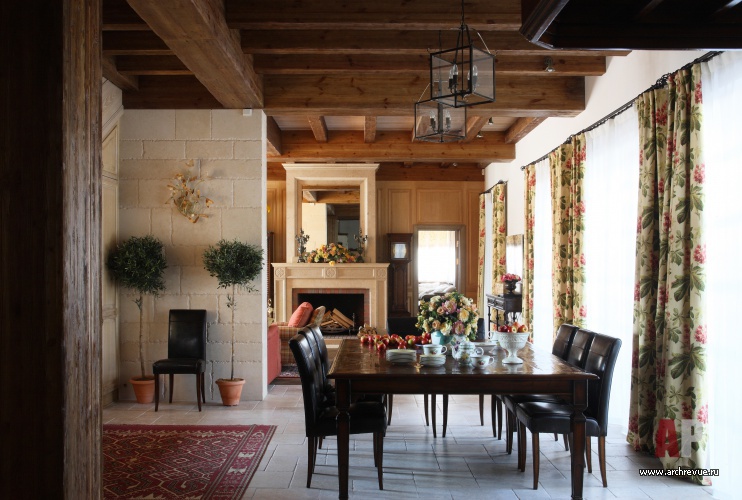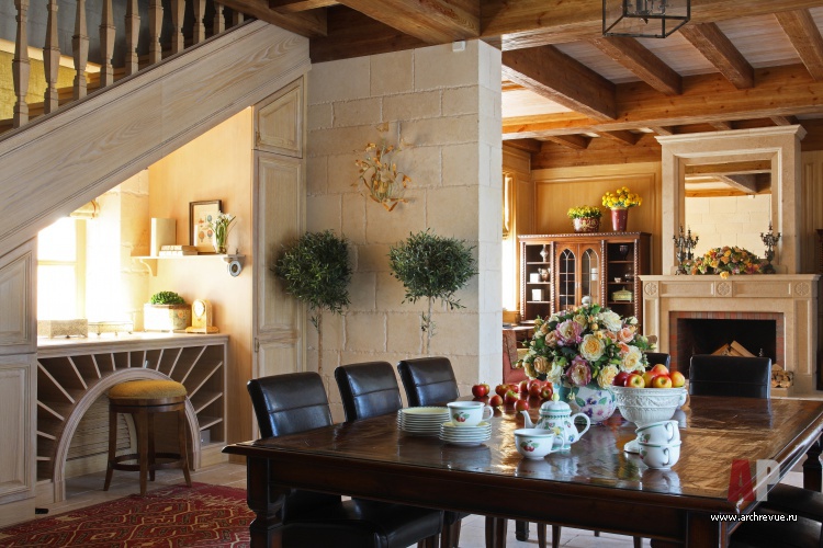В декоре использованы приемы и элементы оформления, характерные для европейских загородных домов: сложные финишные покраски, росписи, реплики исторической мебели, богатые и фактурные обои, натуральные ткани с кружевом и вышивкой. В собирательный образ уютного дома в духе кантри включены приметы викторианского, средиземноморского и нормандского стилей.