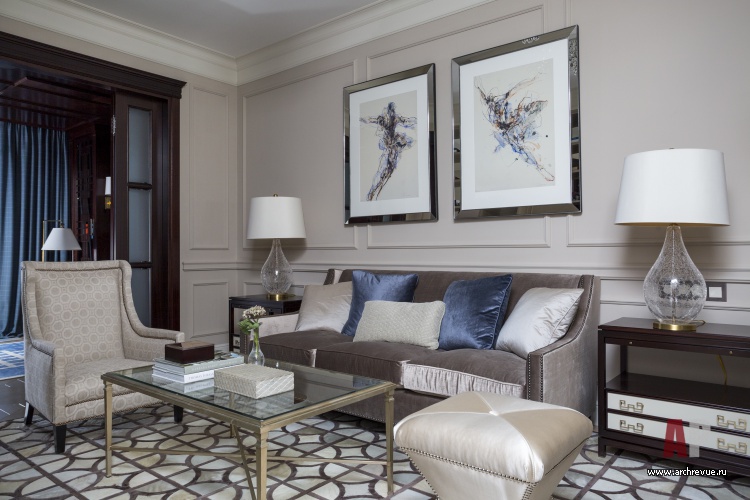 Гостиная Kravet Couture, Bernhardt, кресла Andrew Martin, Ethan Allen