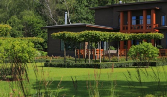 Структура особняка включает три самостоятельных и уникальных по декоративному решению блока: семейная часть, оздоровительная (со СПА-комплексом и бассейном) и клубная – для приемов и вечеринок. Смысловое ядро хозяйской половины – двусветная гостиная с камином и мягкой группой. Она расположена ниже основного уровня и оформлена полукруглым подиумом с придающей парадное звучание пластикой.