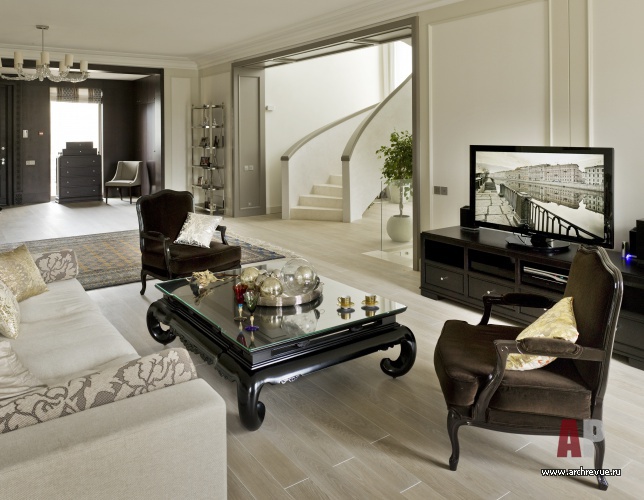 Нейтральная цветовая палитра с оттенками серого и бежевого, природные фактуры дерева, камня благородных форм мебель… Казалось бы, в интерьере ничего кричащего и пафосного, но красота, простота, комфорт, которые формирует интерьерная среда, придают интерьеру европейский шик.