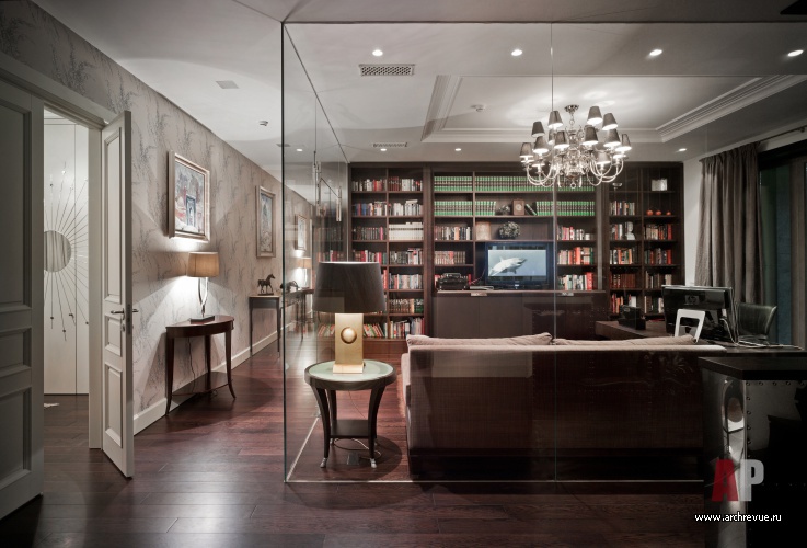 Кабинет диван Henredon (by Barbara Barry), столик John Hutton,; книжный шкаф, на заказ