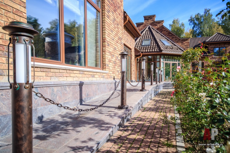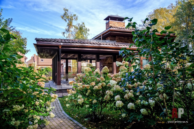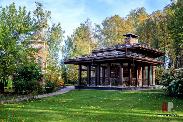 Кроме того на участке была возведена дополнительная постройка – беседка с барбекю и летней кухней. Проектирование ландшафта, создание эффектных клумб и тихих уютных двориков также входило в техническое задание, выданное архитектору.
